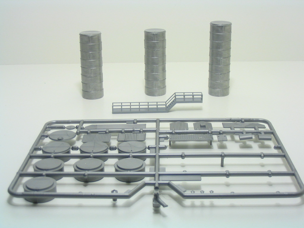 The reverse view shows the two large vertical tanks with piping. I may come back at a later date and add more tanks, piping, and other details.