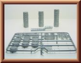The Superior Paper Mill comes with enough pieces to construct four tanks. Instead I used the pieces to make three taller tanks. I have a few pieces left to make a couple small tanks for another building. I painted the them silver. I glued the walkway together and painted it grey. I had to use a longer ladder from another kit since I raised the tank height. I attached piping to the tanks per the instructions.