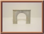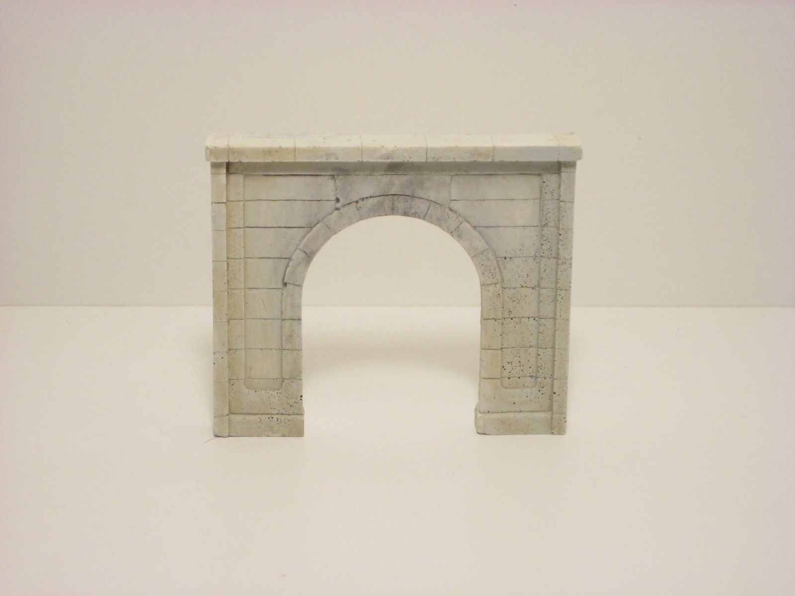 I painted the retaining walls the same way I painted the portal. I glued them in place on either side of the tunnel portal. I will later fill in the gaps behind the portal and retaining walls with sculptamold.