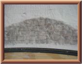 For this project I used Hydrocal, which is a type of plaster with a finer grain. I had to mix up small batches because it dries very quickly. I applied globs of Hydrocal to the wall. I scribed horizontal lines in it while it was wet to create the strata lines. I randomly scraped and cut away portions on the different layers as it dried to shape the rocks. I repeated this process along the rock wall.