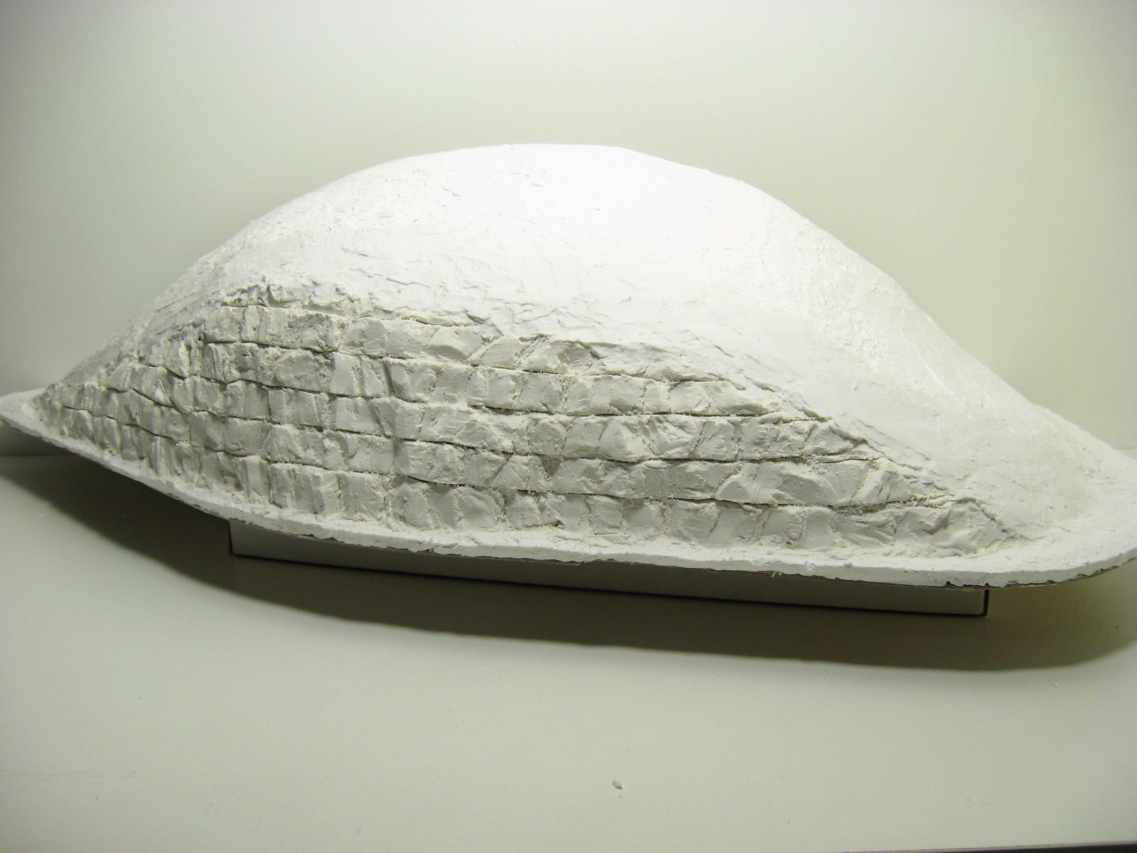 I applied plaster cloth starting from the bottom of the ridge working up. I overlapped the edges of the cloth. I let it dry a few days before proceeding.