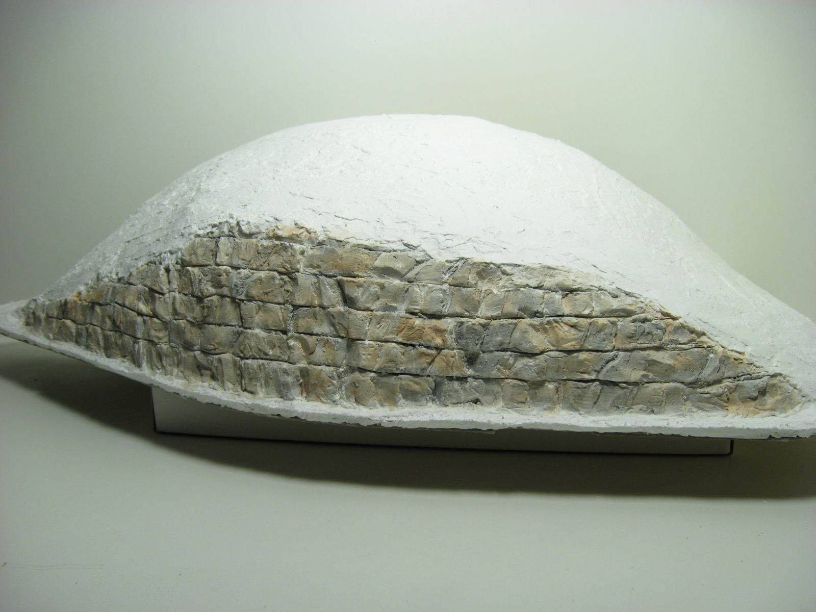 I removed the ridge from the layout to work on the rock face. Using Hydrocal, I created the rock surface in the same manor as the rock face on the opposite of the cut. I covered any ramming surfaces with Sculptamold.