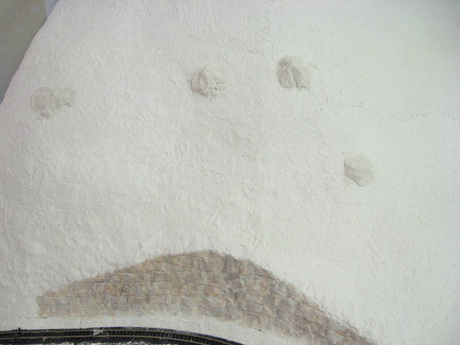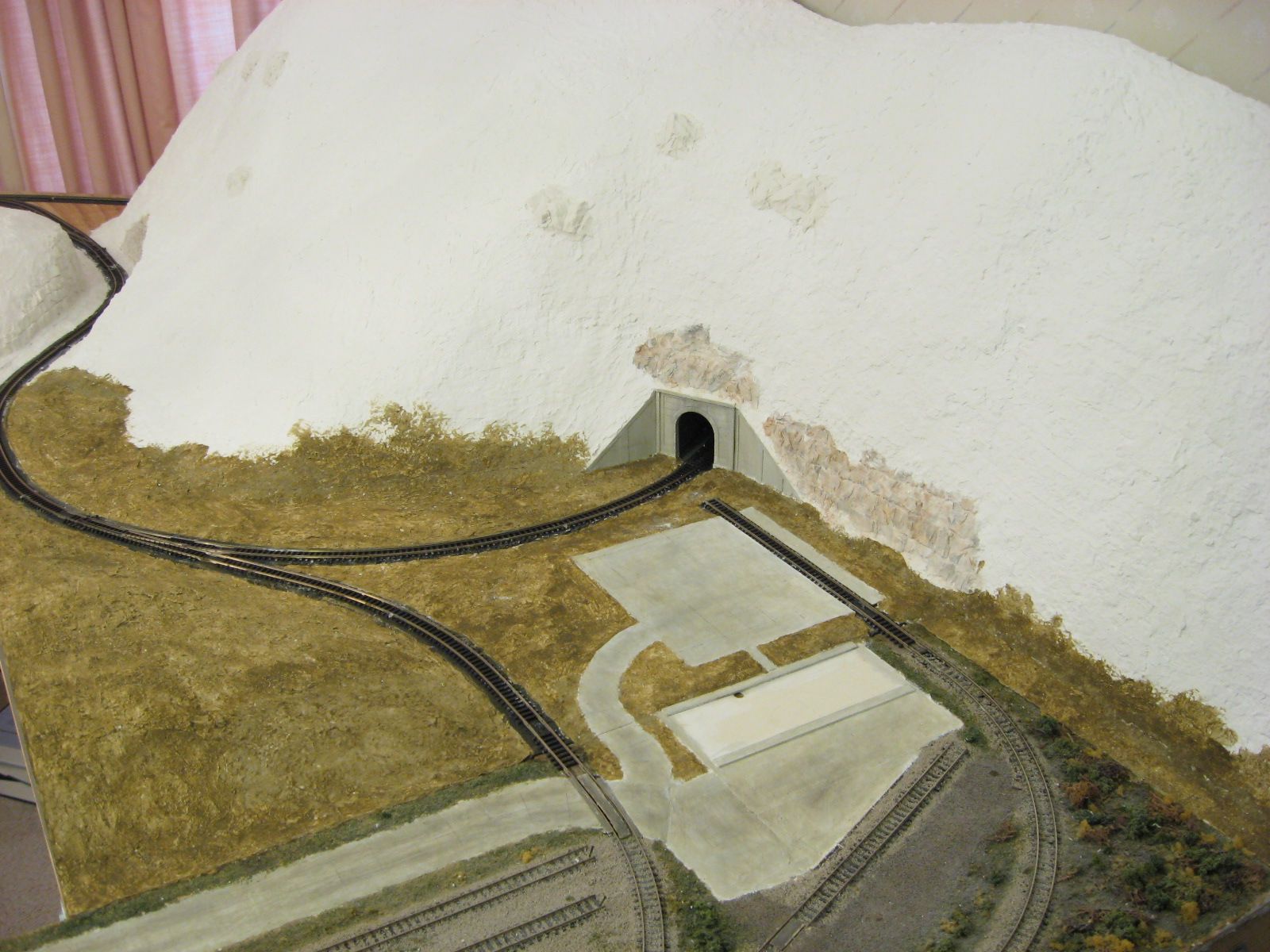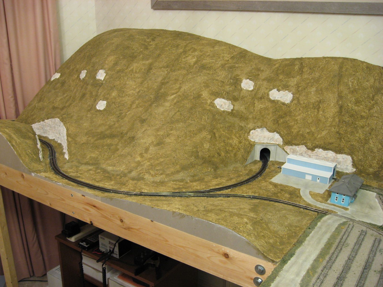 I randomly applied globs of Hydrocal to the large mountain ridge. I carved and picked away at the globs to form the rock texture. I painted them the same way I painted my other rocks.