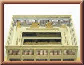 I constructed both sets of stairs. I painted them a light gray first, then a wash of concrete. I painted the handrails a darker gray, and then glued them to the stairs. I glued both sets of stairs to the base.