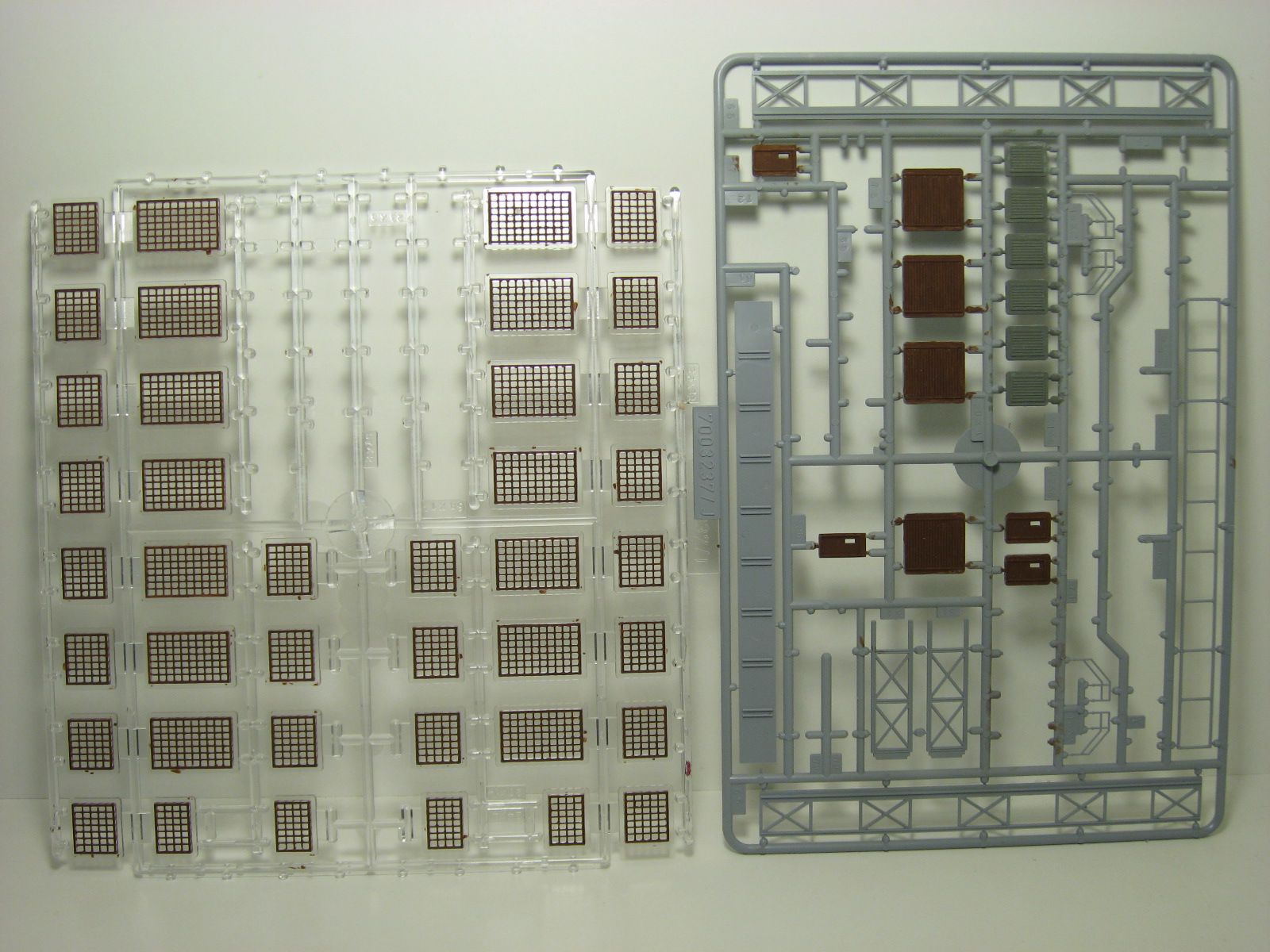 I spent quite a bit of time painting the windows. These windows were like the previous windows I had worked on before. The pains, frames, and mullions were molded together in the same transparent plastic. I had to paint the frames and mullions while trying not to get any paint on the pains. I painted the windows and doors brown. I painted the vents a dark gray color. I then glued all of these to the building.