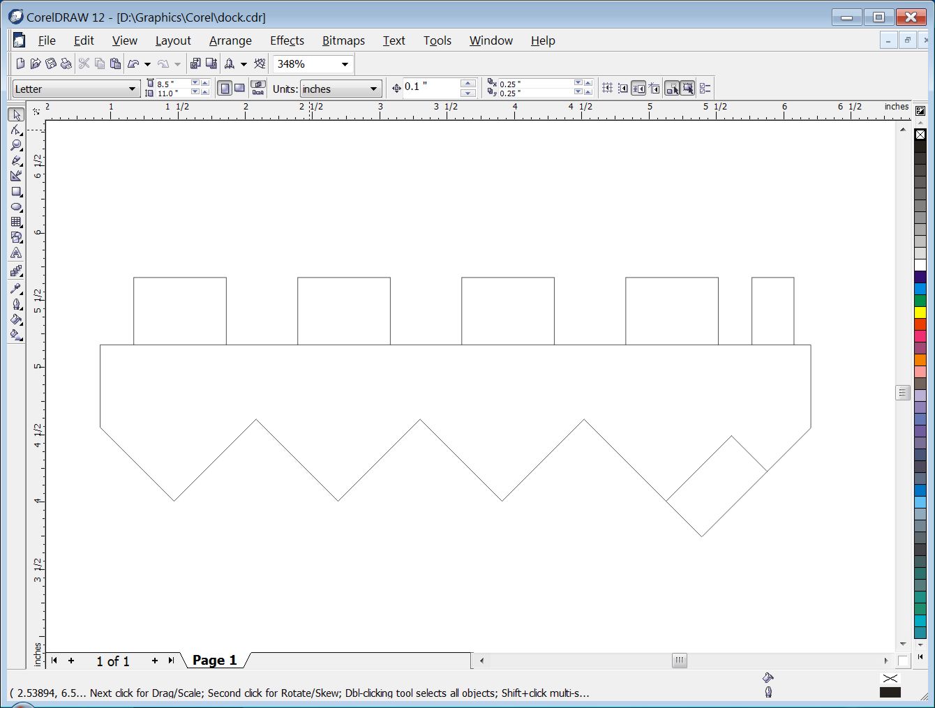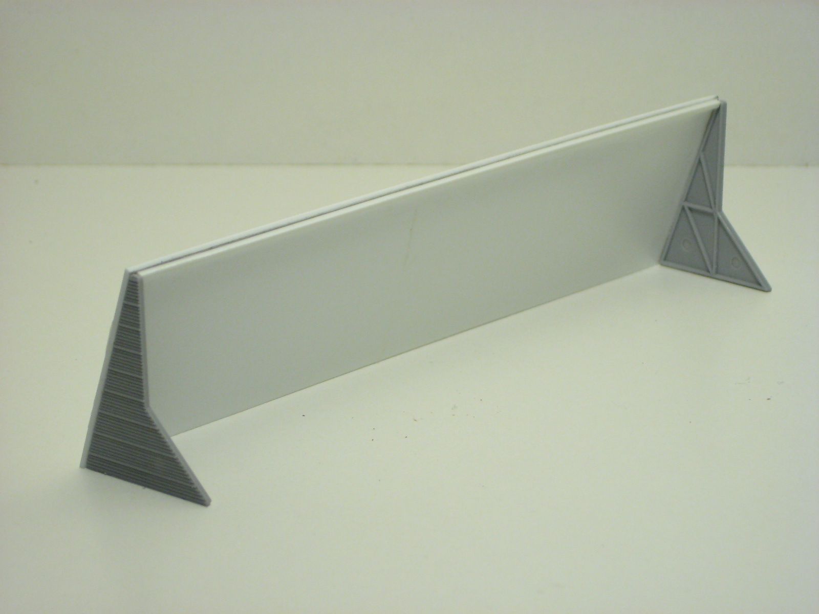 I decided to use the computer to design the odd shaped dock. I wanted the platform the trucks back up to angled 45 degrees off the back of the building. I also wanted to incorporate the stairwell from the kit. I measured the widths of all the doors and the distances between them. I drew them into the design software. I designed the dock to fit with the door locations and stairwell location. I created a mirror image of the dock and printed it out. I glued it to the back of the styrene plastic sheet so I would not have to worry if the glue left any marks when I removed it later. I used a nibbler tool to cut out square chucks of plastic while following the template. I had use a file for some clean up and to get the stairwell to fit correctly.
