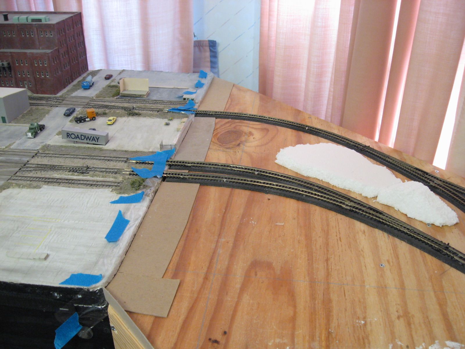 My next project is to start working on the brewery complex building foundations, roads, and sidewalks. I am going to hold off on updating the scenery on the NTRAK module until after I have added scenery to the brewery complex corner module that joins up with it.