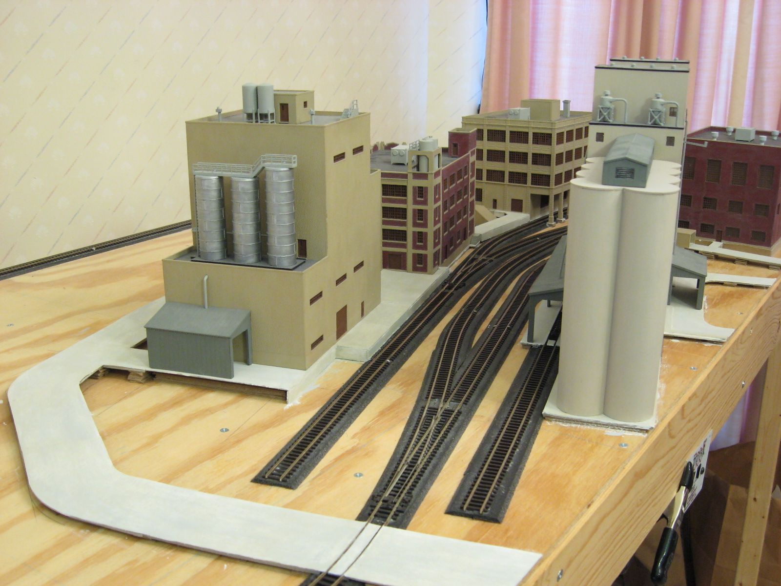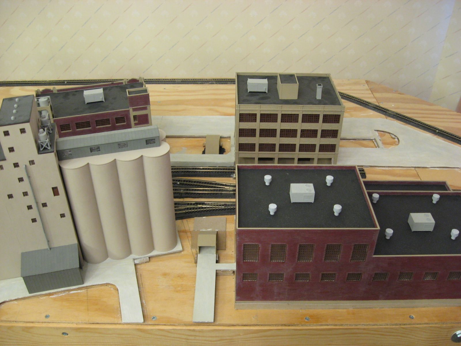 I painted the tunnel portal surfaces except the floor the same tan color I used on the buildings. I painted the floors a gray wash followed by a concrete wash. I may add handrails later.