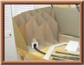 I cut out and hot glued a vertical piece between the vertical wall and the piece just added. I hot glued it to the back base piece. This will add more structural support to the corner.