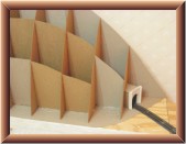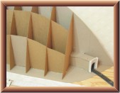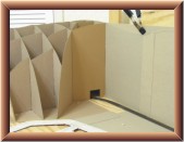 When I reached the tunnel, I cut the cardboard pieces so they would touch the top and sides of the tunnel. I hot glued the vertical pieces to the tunnel, back wall and floor. I attached more cardboard between these pieces to add support.