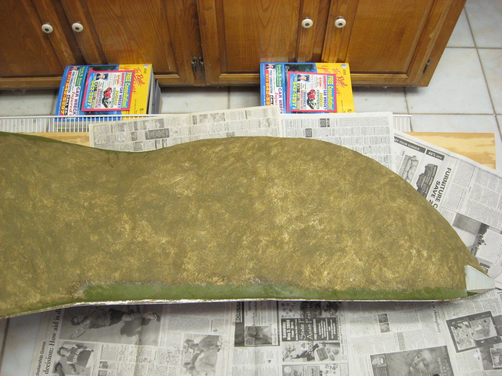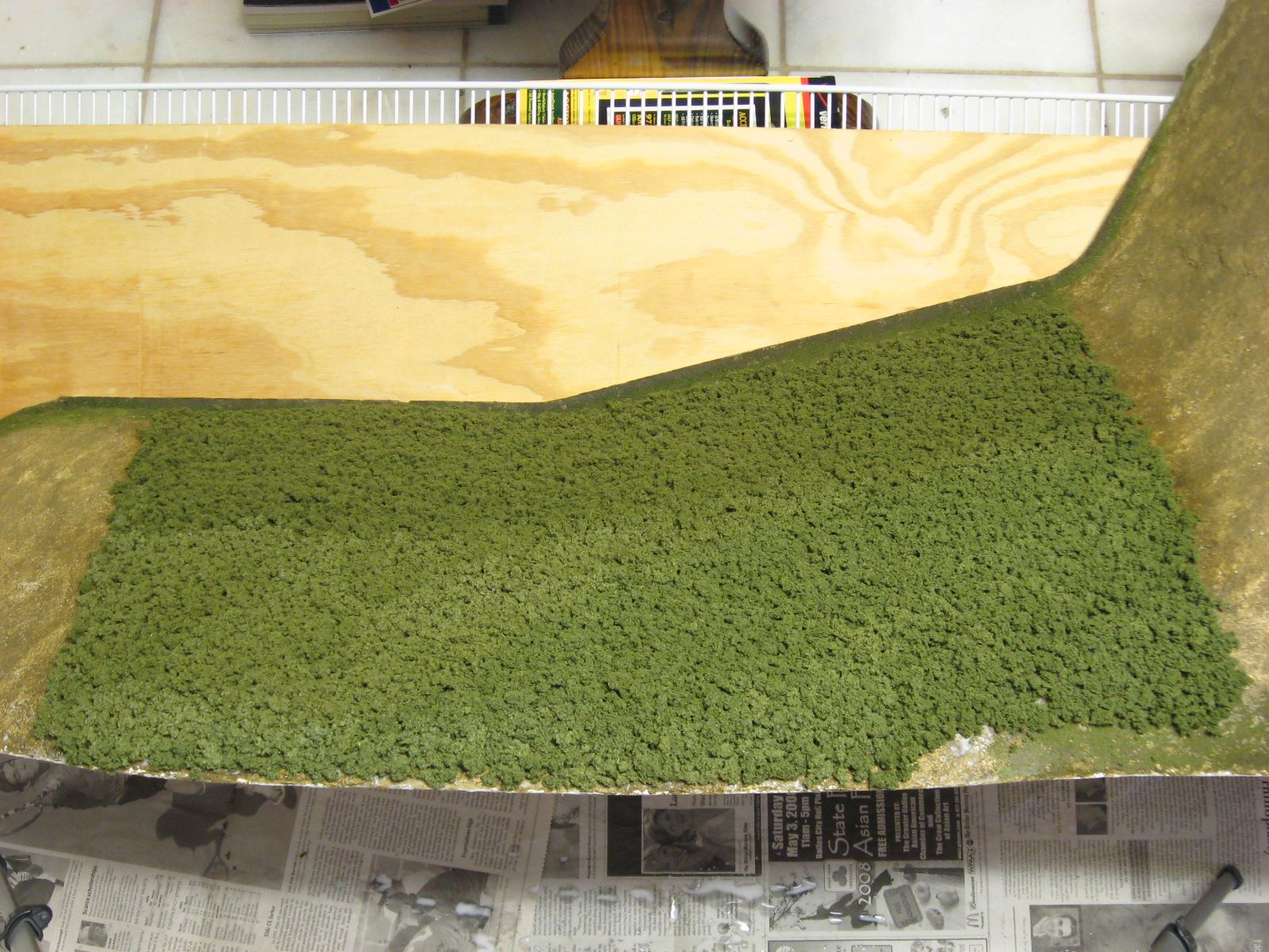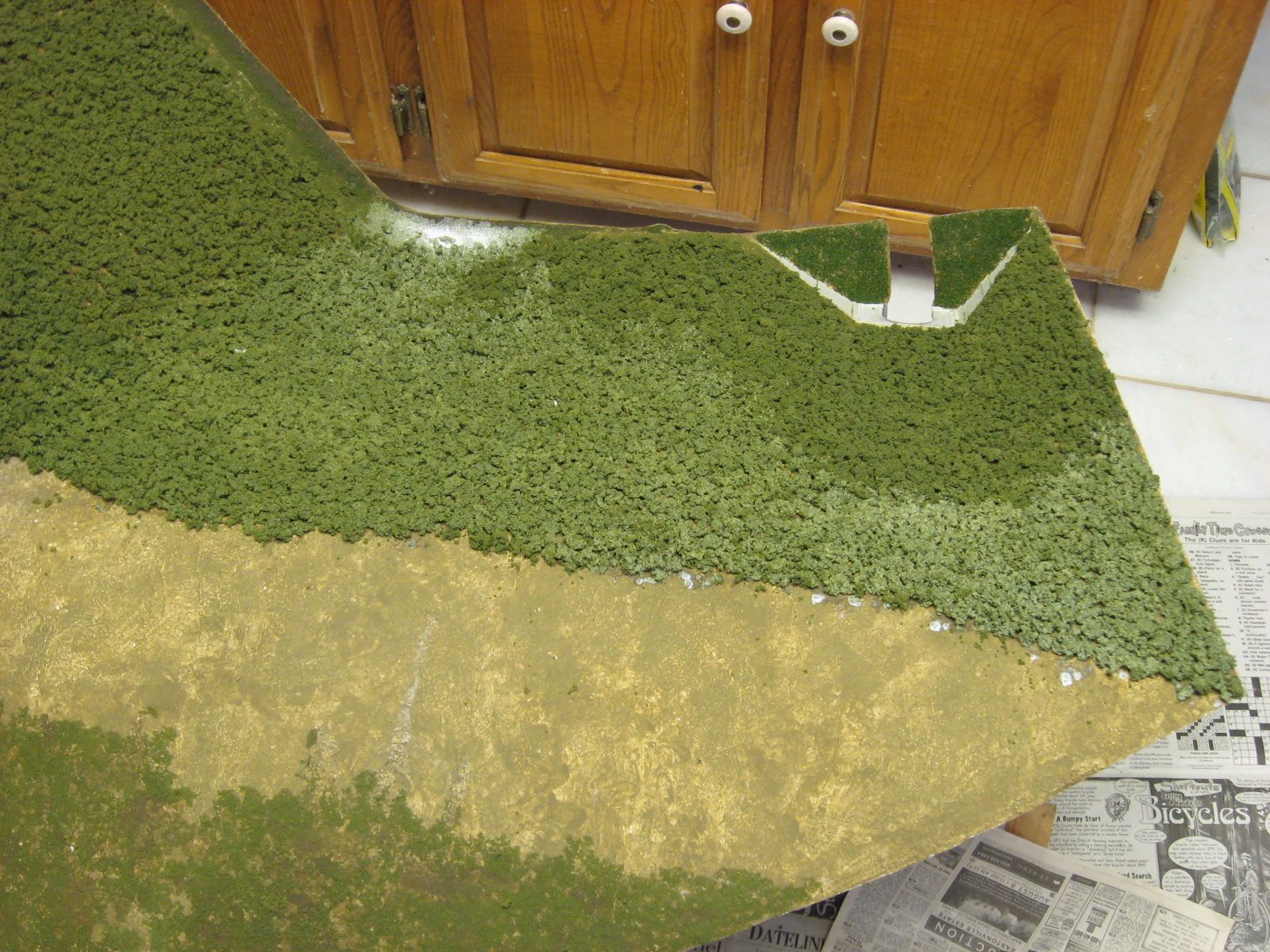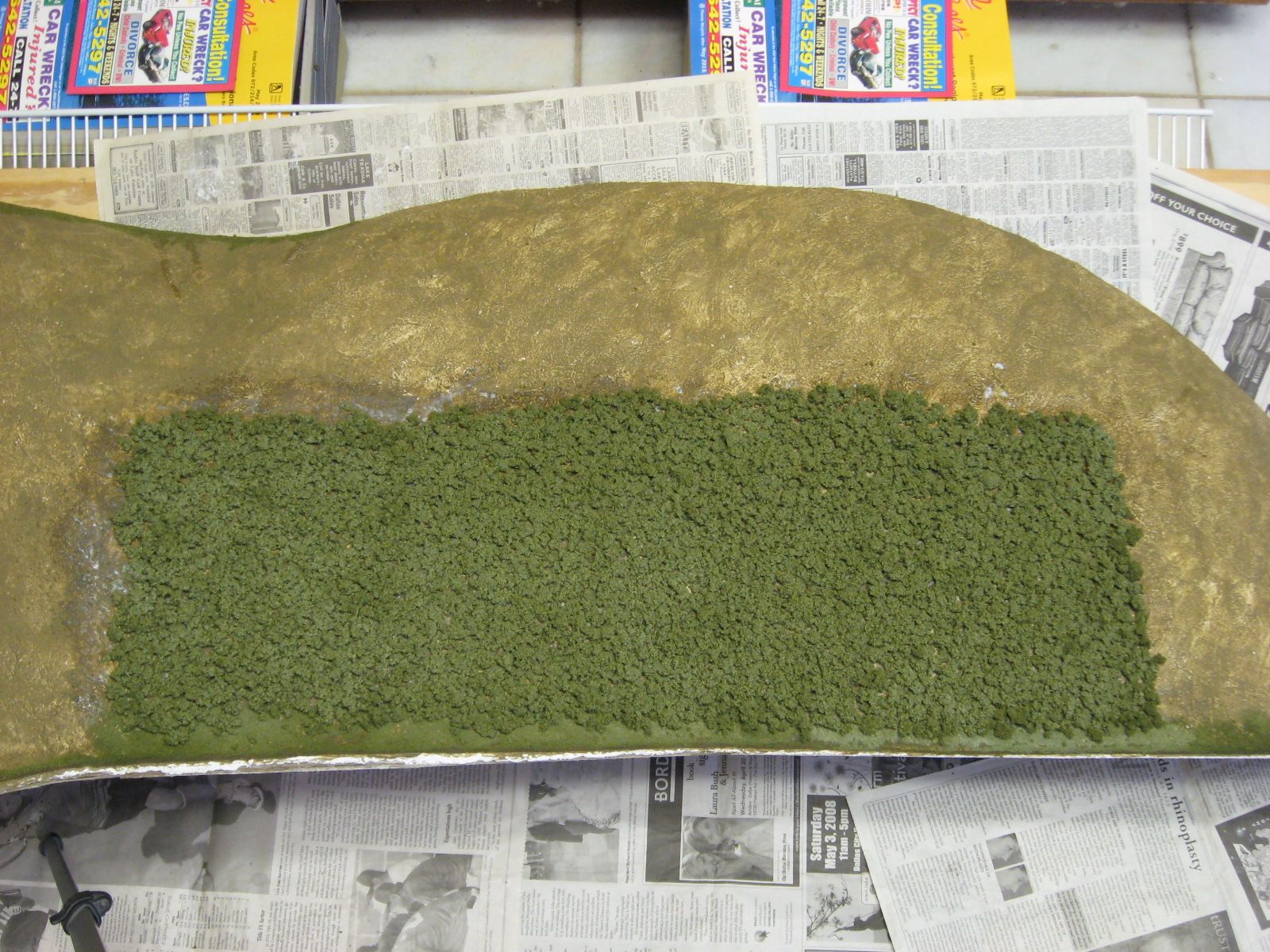Next, I added patches of brown and burnt grass turf to the top of the ridge. I will place tress is this area at a later date.