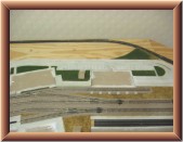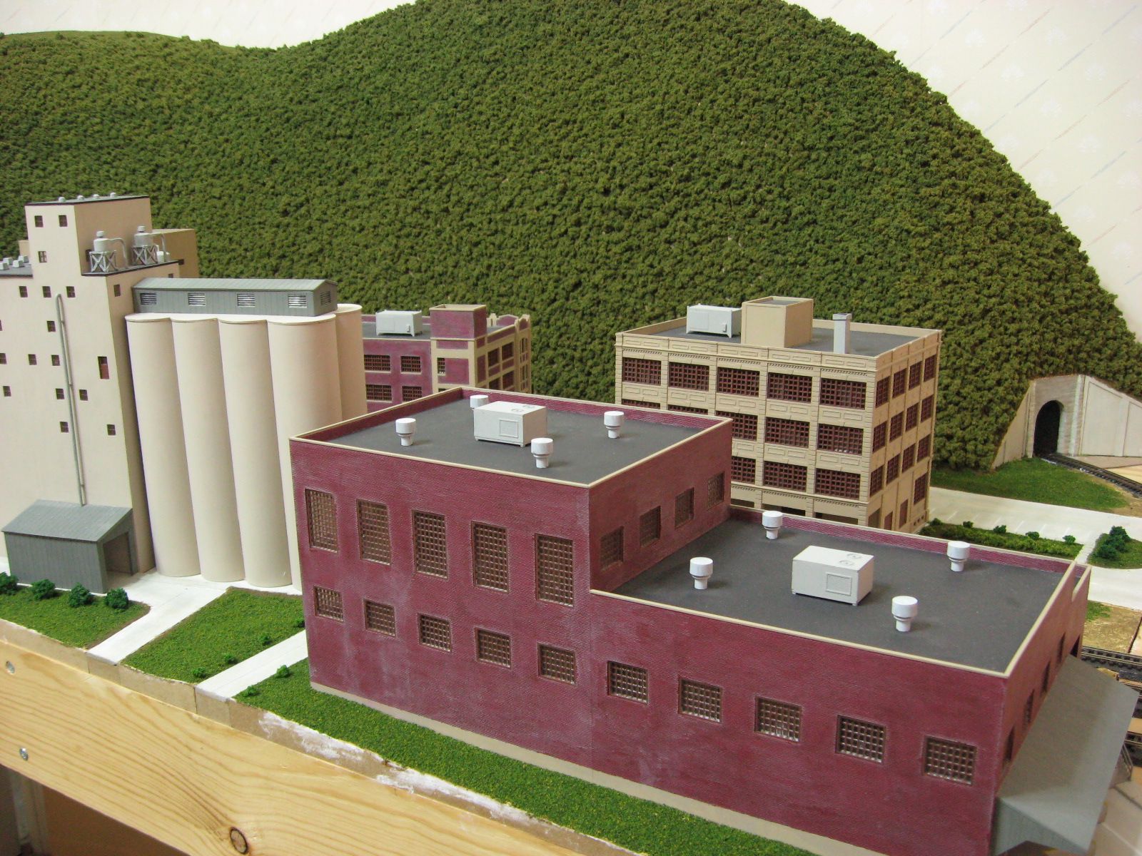 I added a dirt path between the pedestrian tunnel and the mill. I filled in the rest of the area with blended green turf. I left the module edge unfinished. I will add turf after I am close to finishing the adjoining module.
