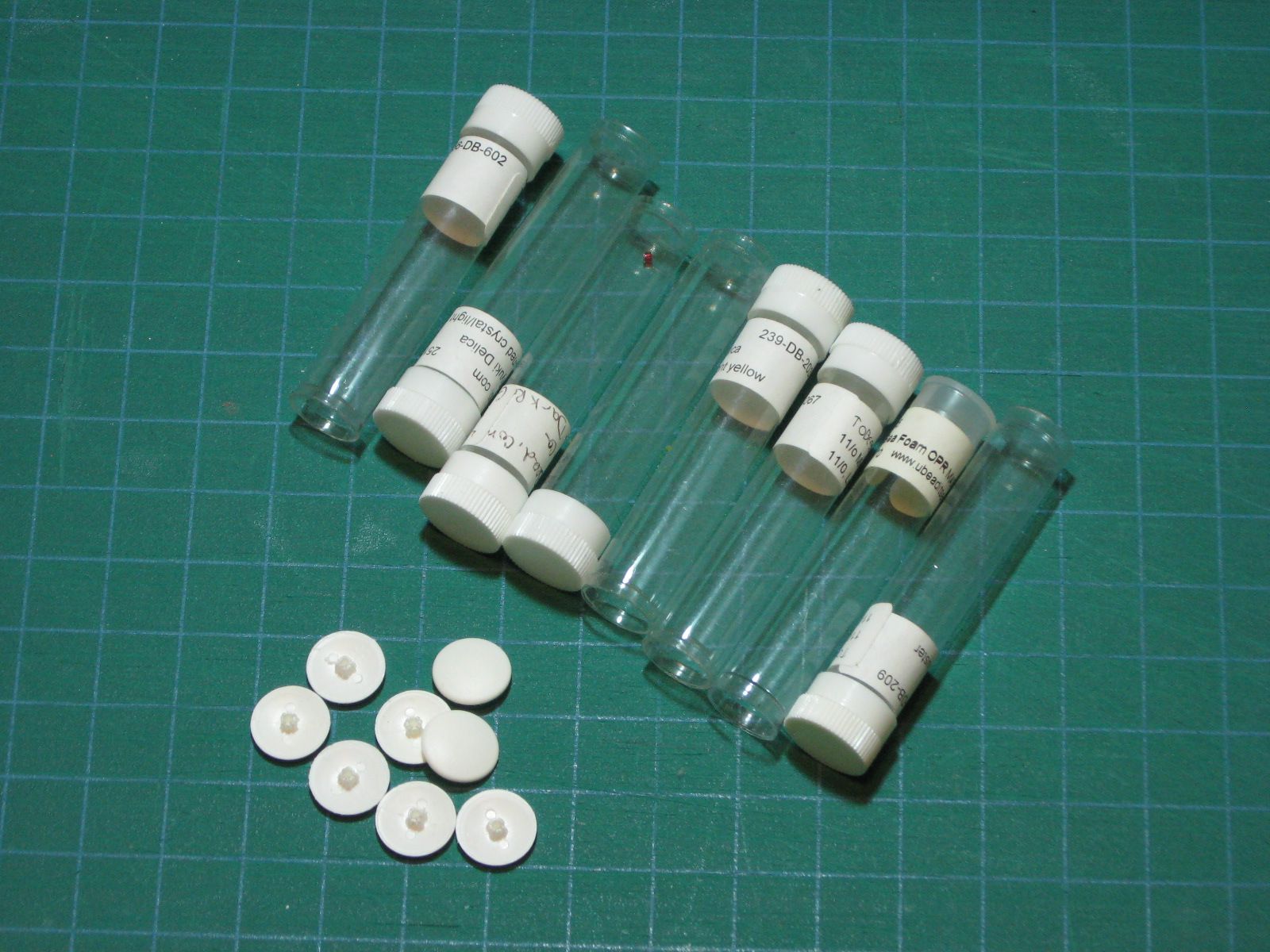 I had some bead containers I could use to create some vertical tanks. I found some round disks in my junk box that could be used to top off the tanks.