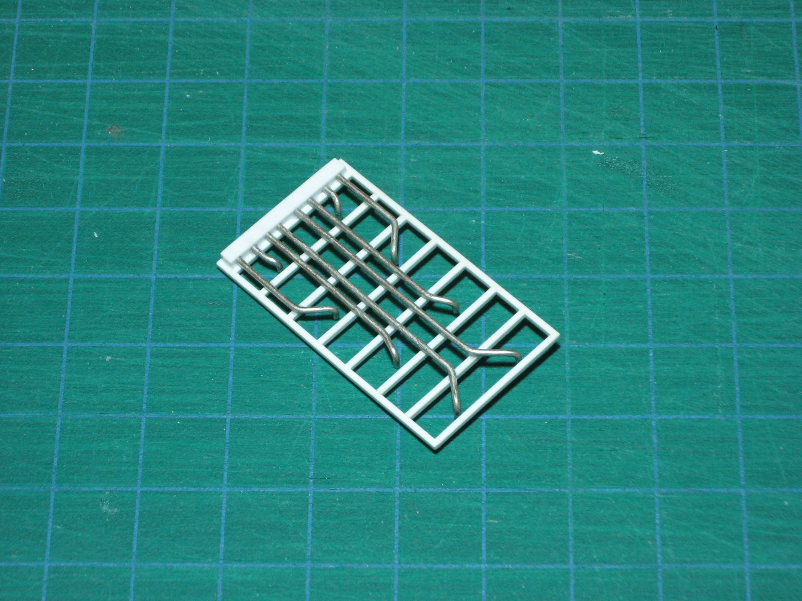 I bent bus wire to form pipes running from the back of the framework to each tank. I glued the piping to the framework.