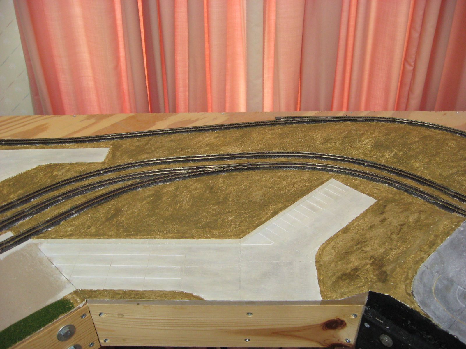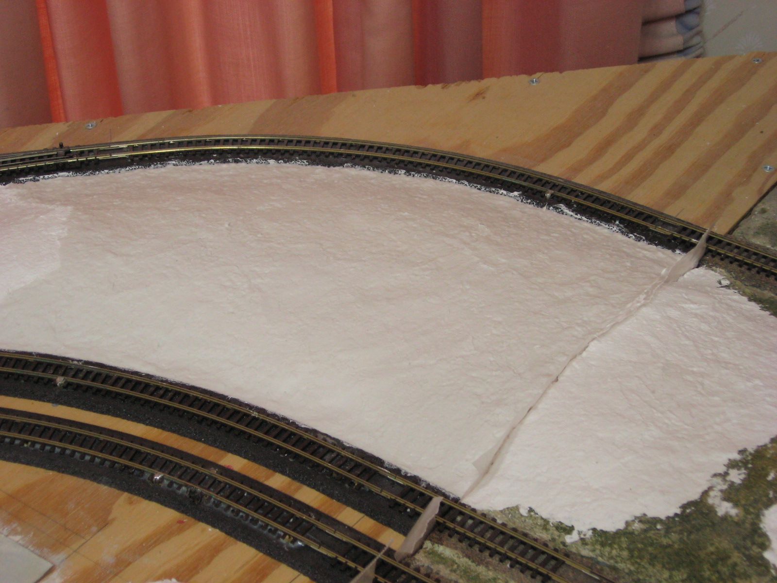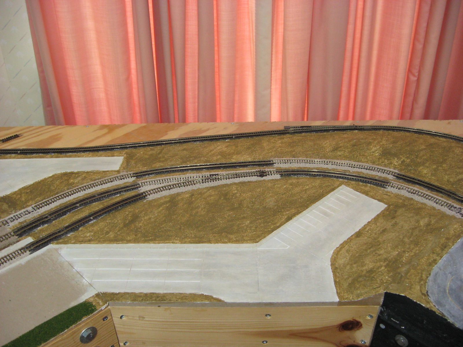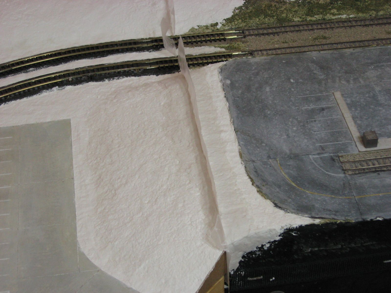 I filled in the edge of the NTRAK module with Sculptamold to blend it in with the corner module.