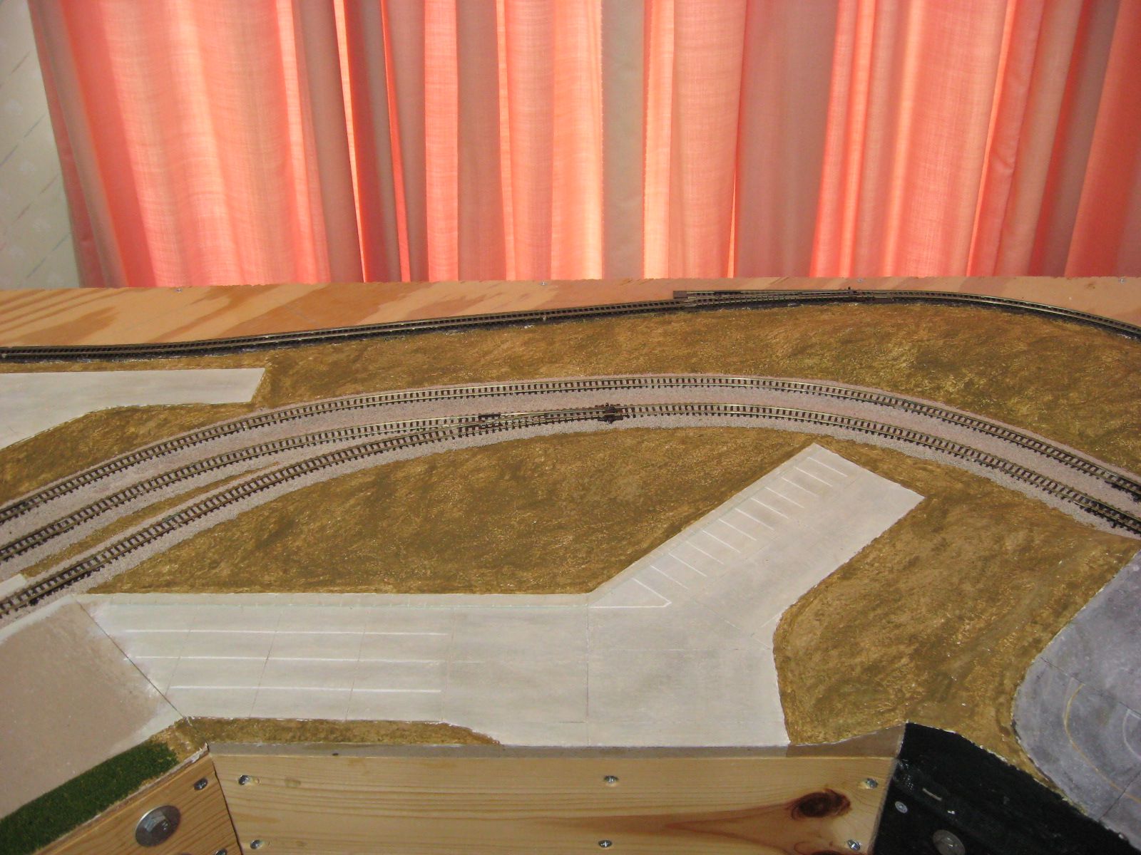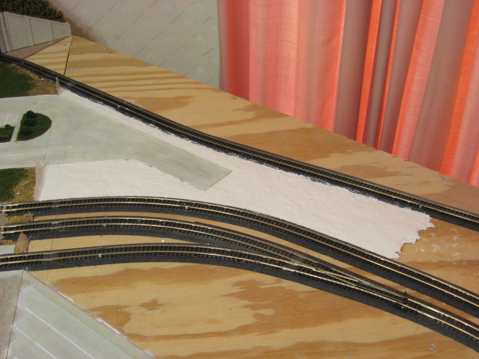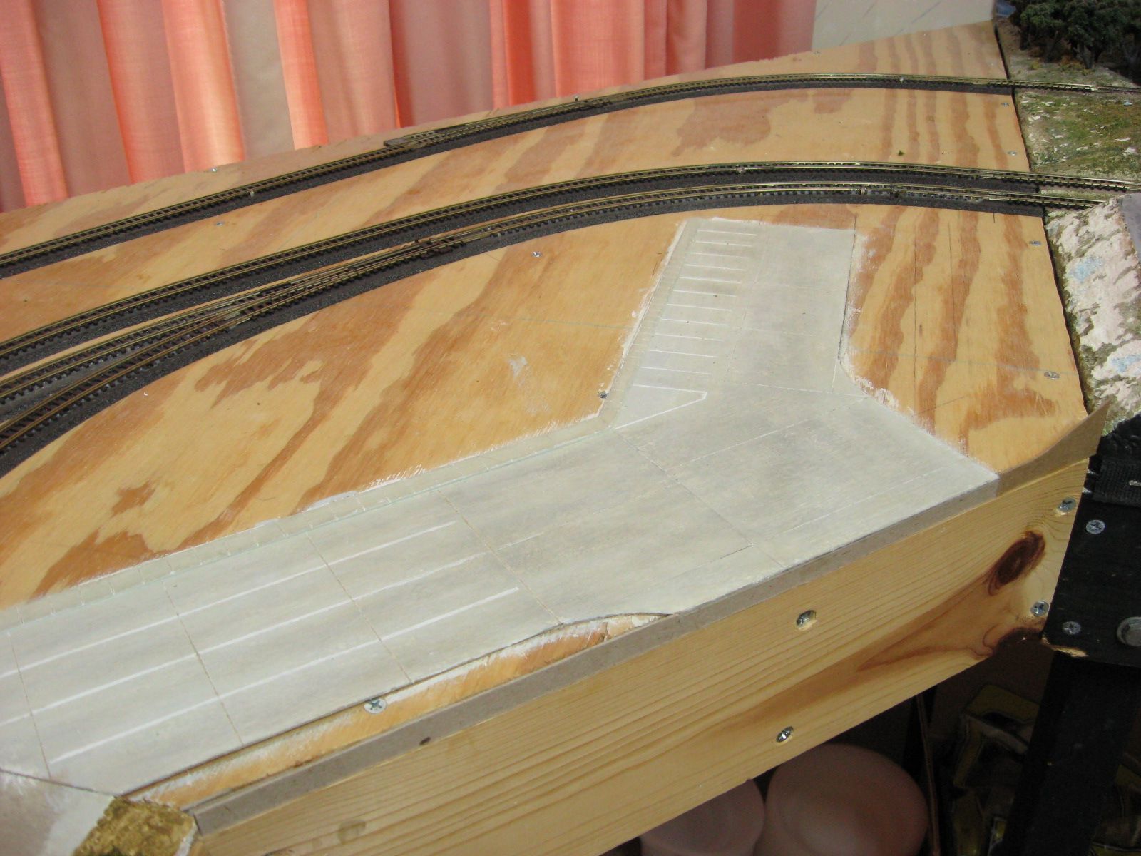 I filled in the edge of the NTRAK module with Sculptamold to blend it in with the corner module.