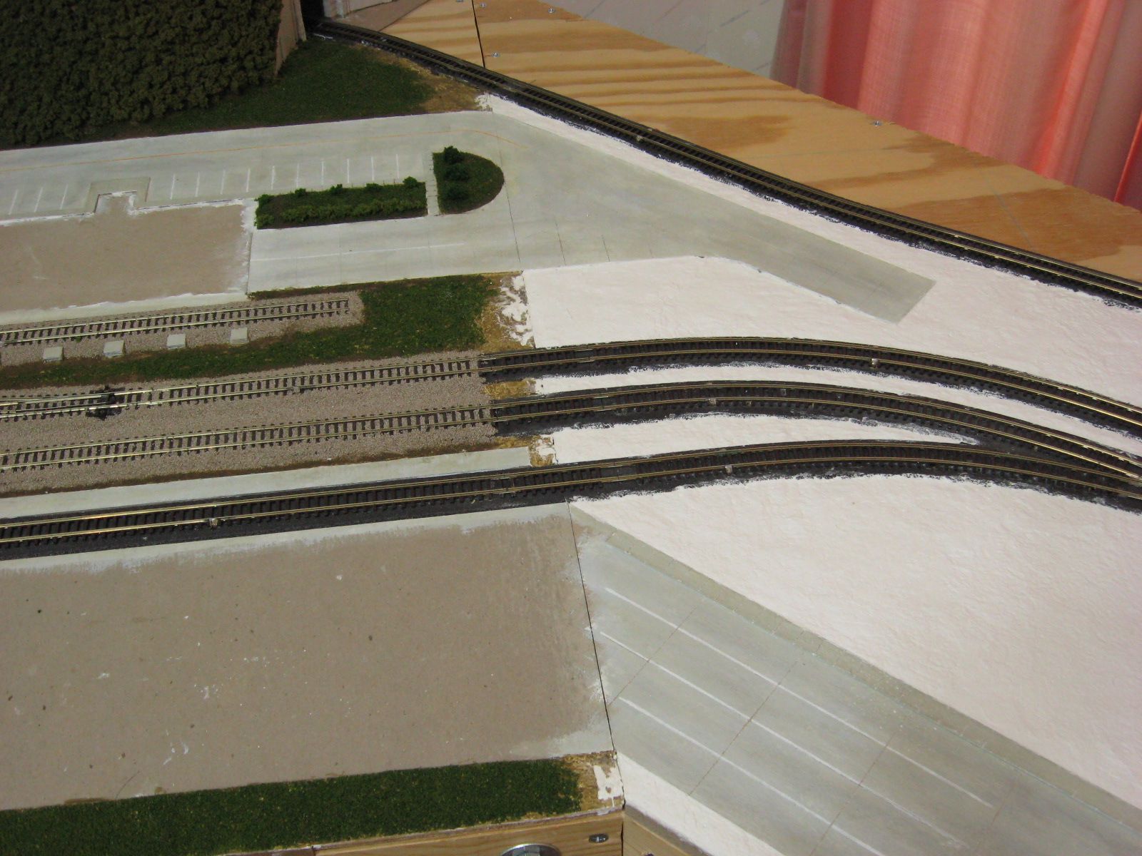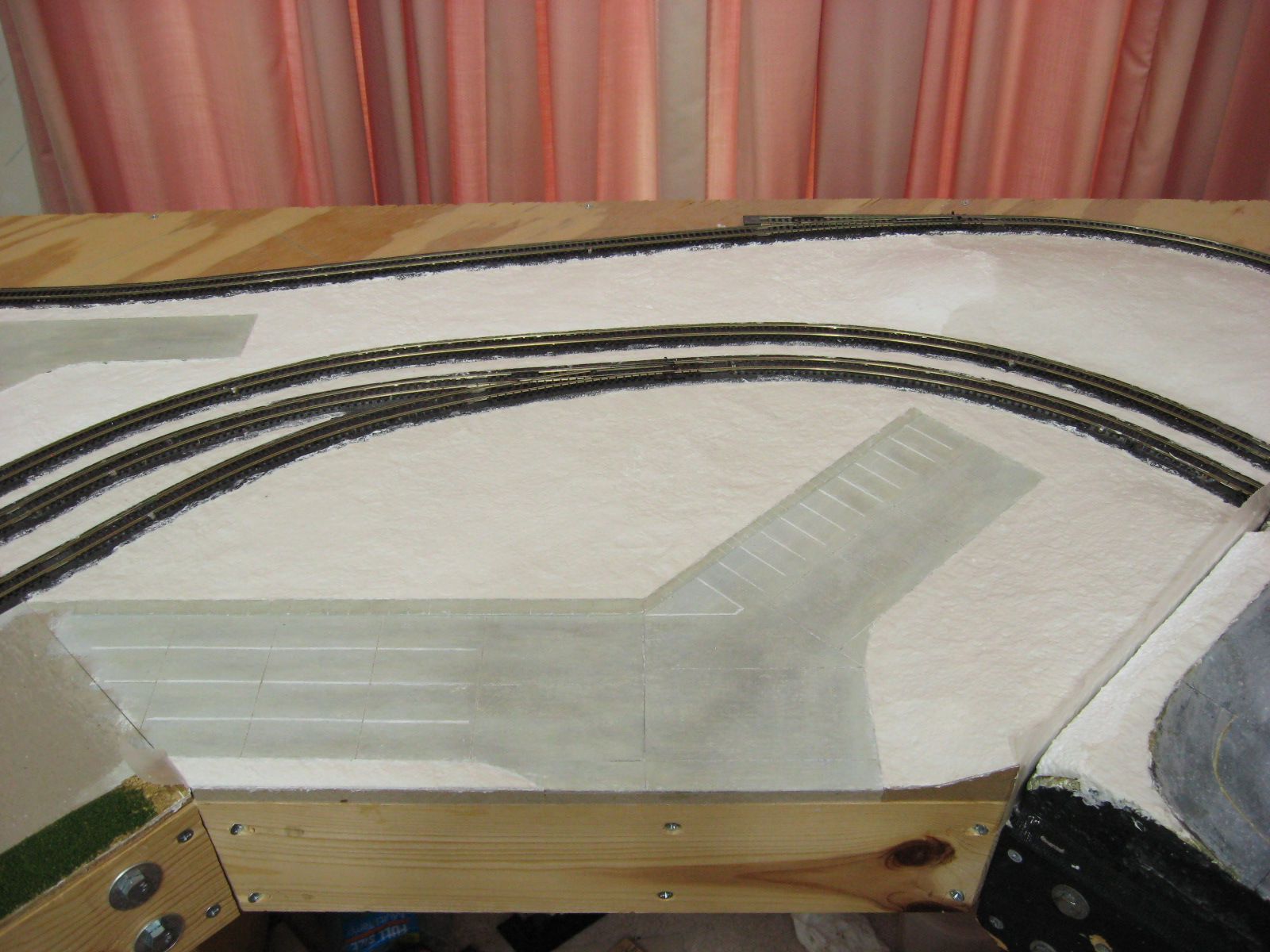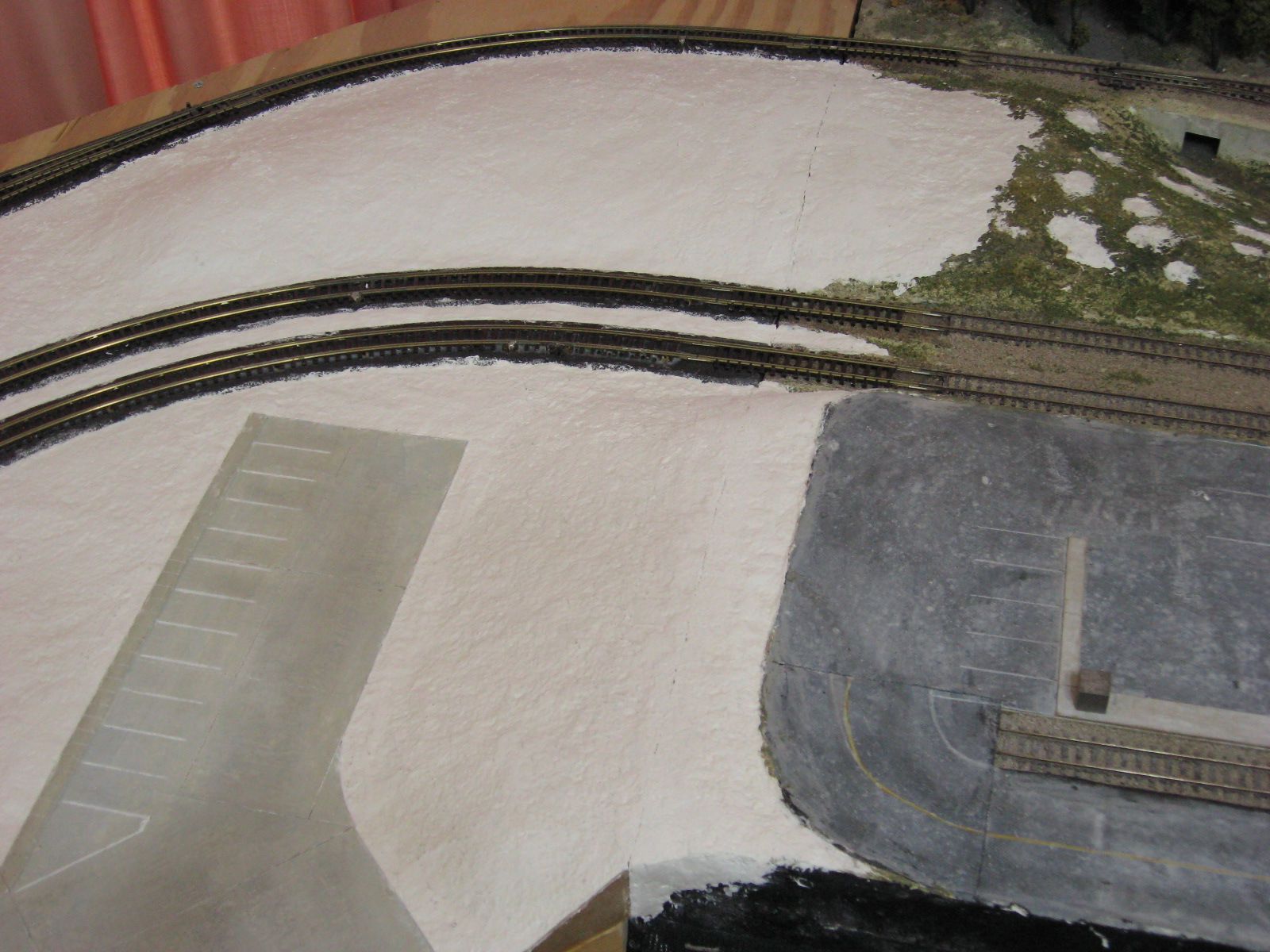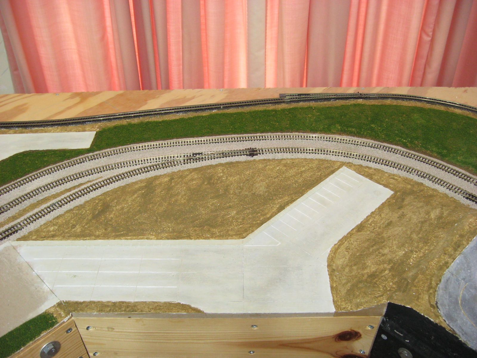 I filled in the edge of the NTRAK module with Sculptamold to blend it in with the corner module.