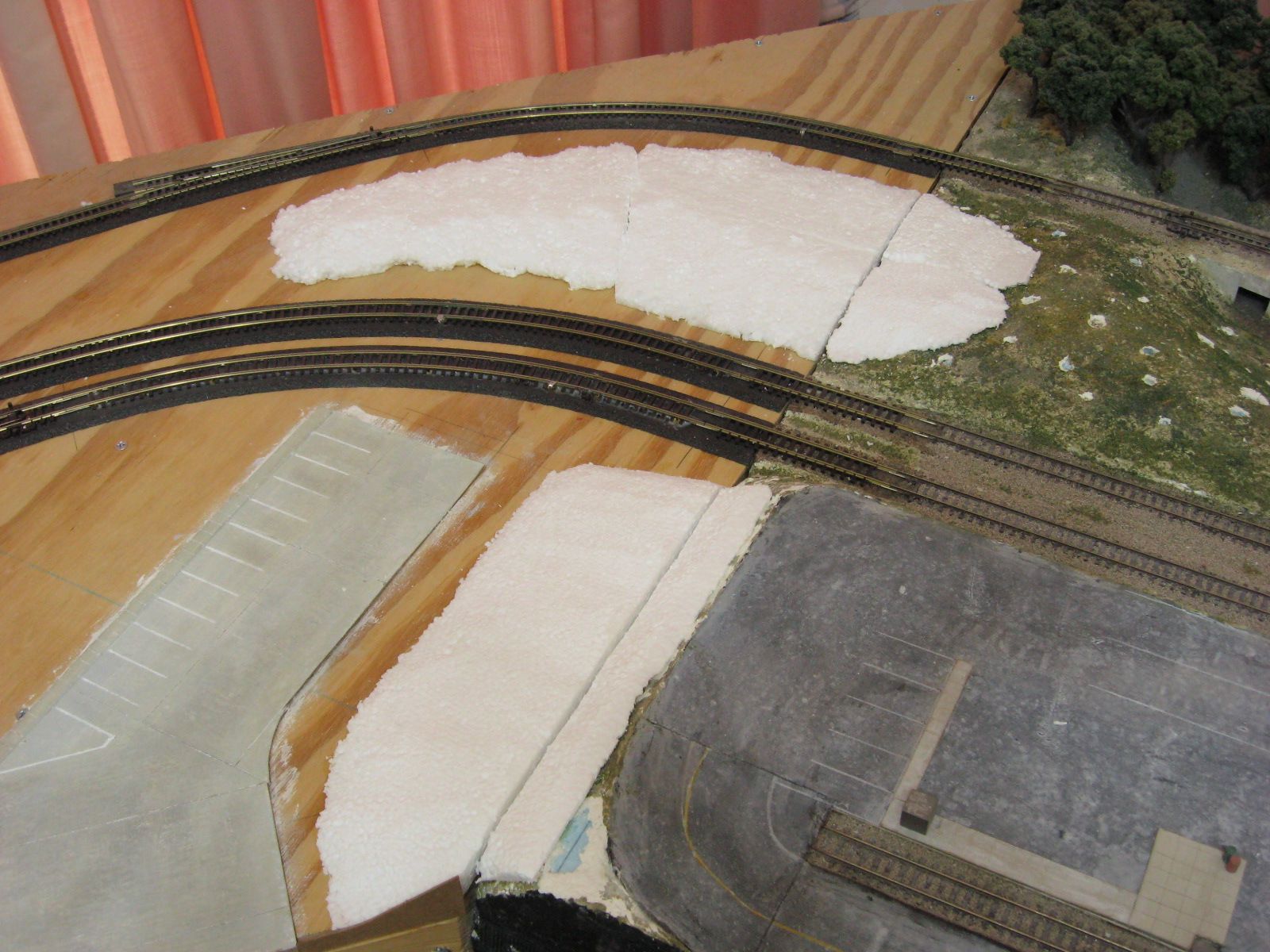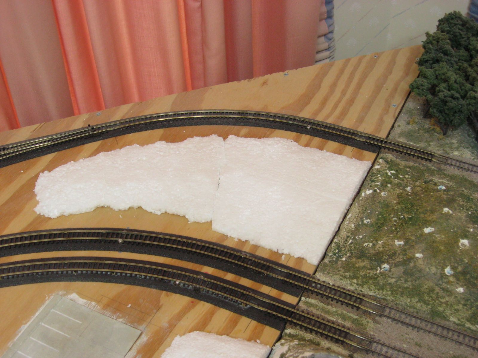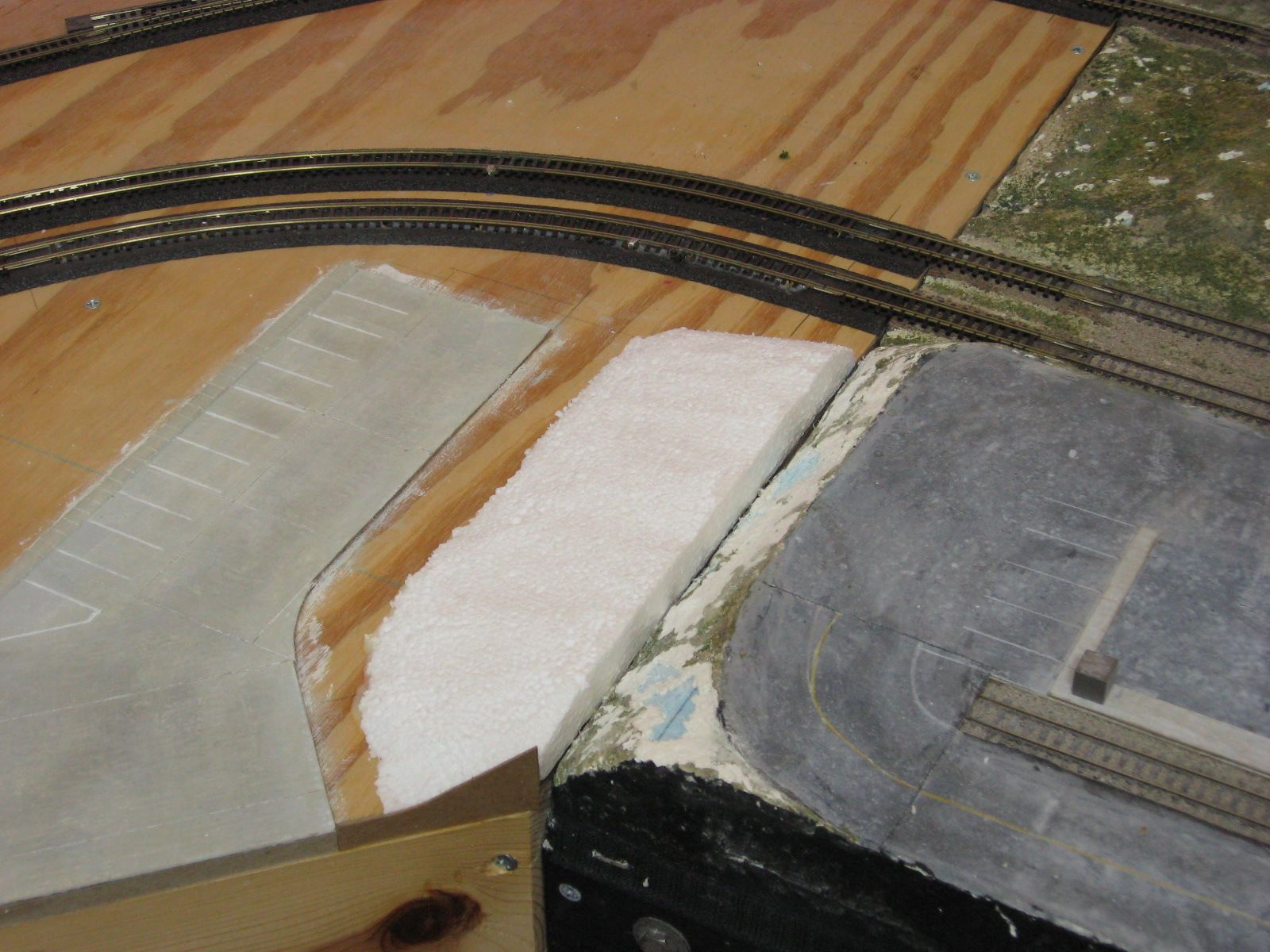 I carved more Styrofoam to glue on the NTRAK module to fill in the gaps along the hills.